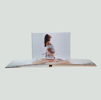 Álbum encadernado com as fotos escolhidas no formato 21 x 21 cm